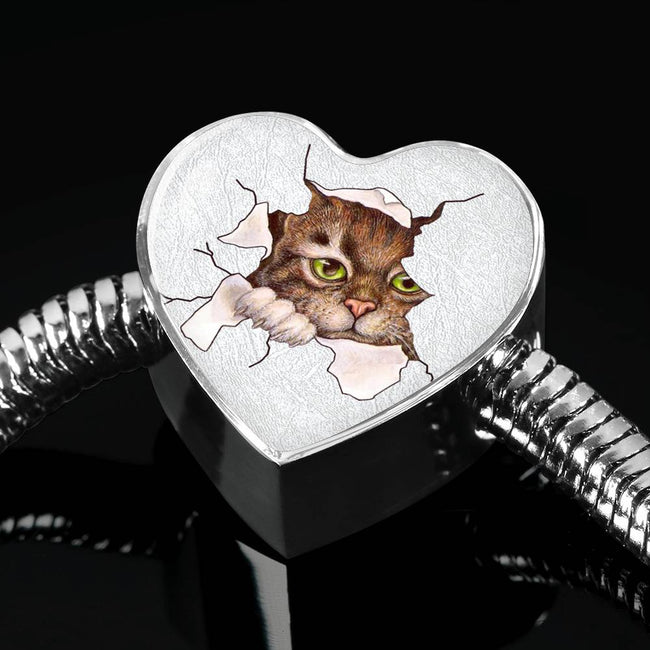 Amazing Cat Art Print Heart Charm Steel Bracelet – Pawlice.com