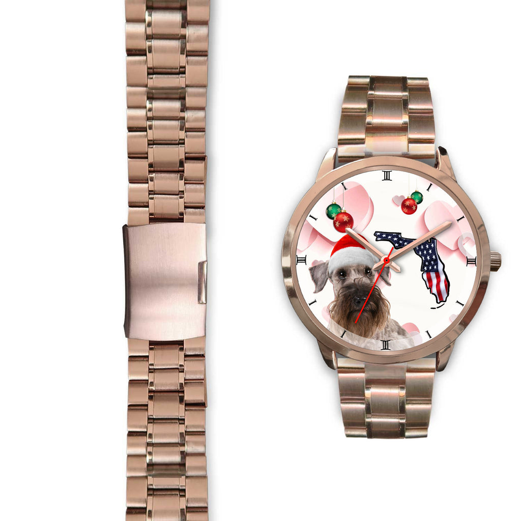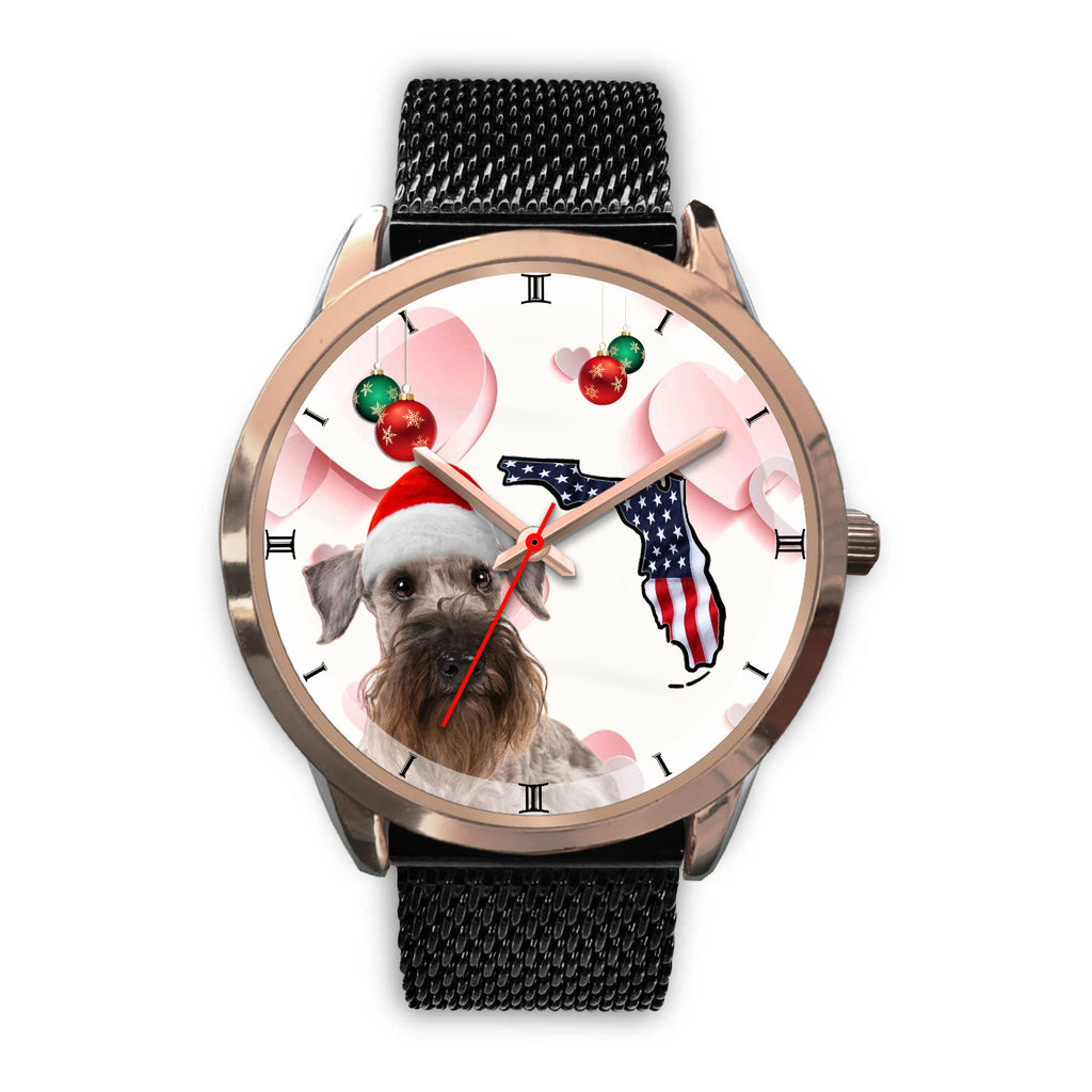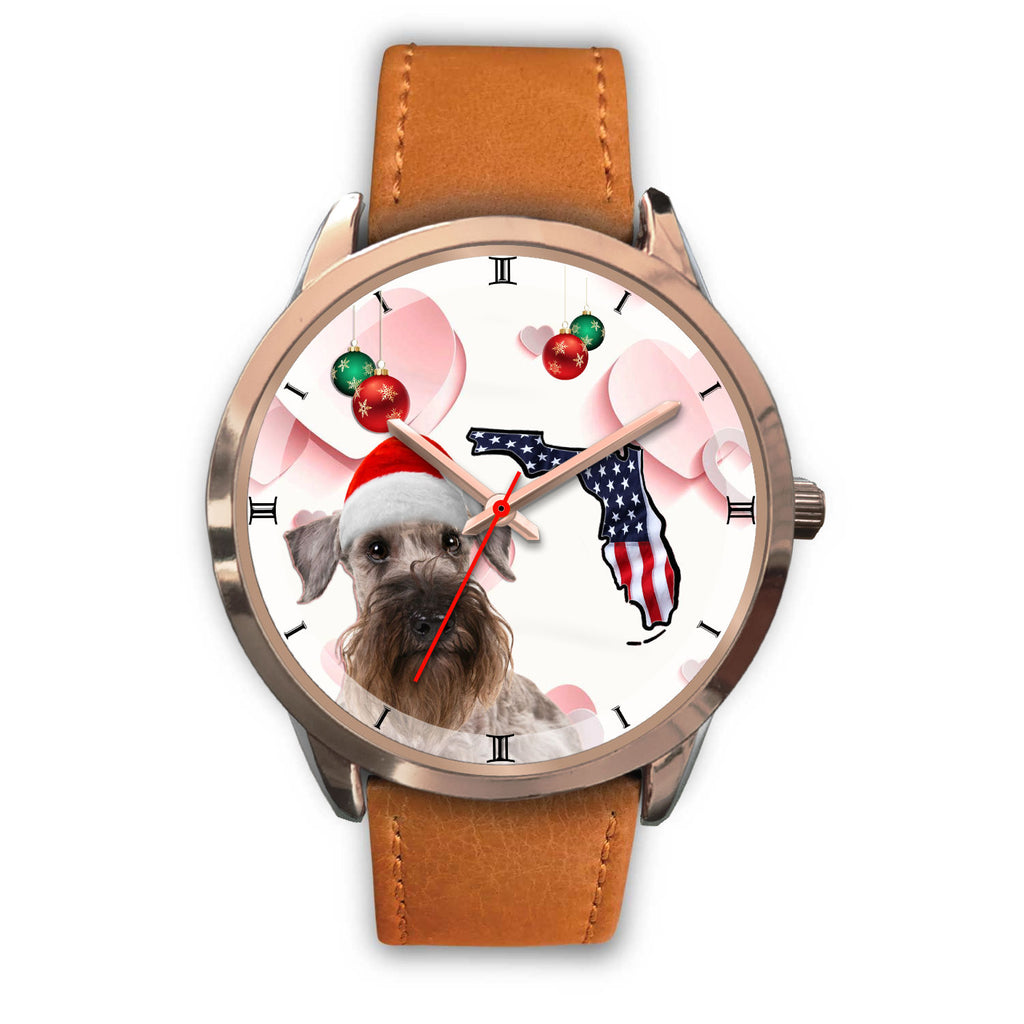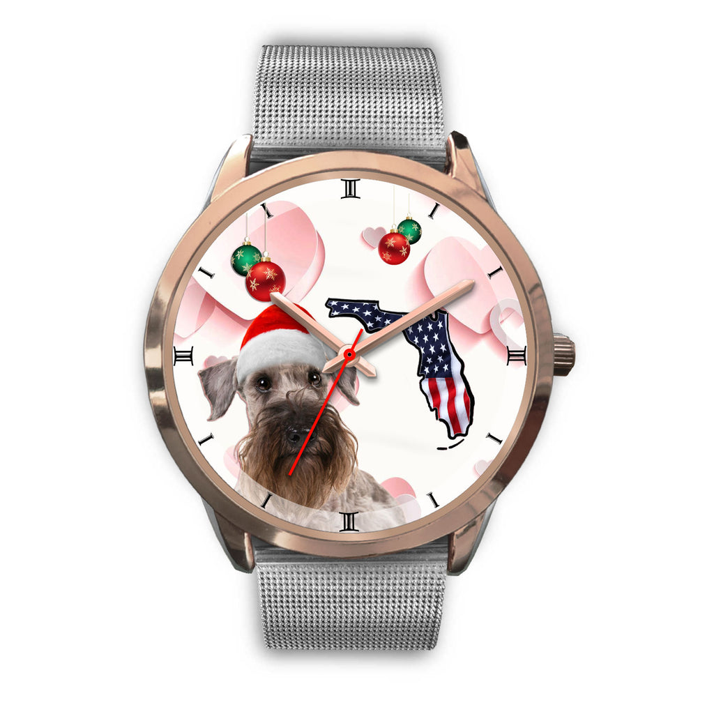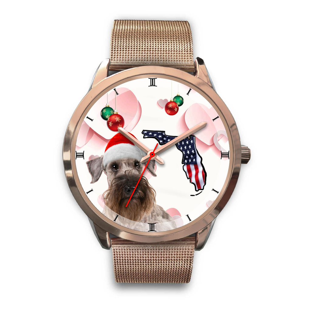 Cesky Terrier On Christmas Florida Wrist Watch
